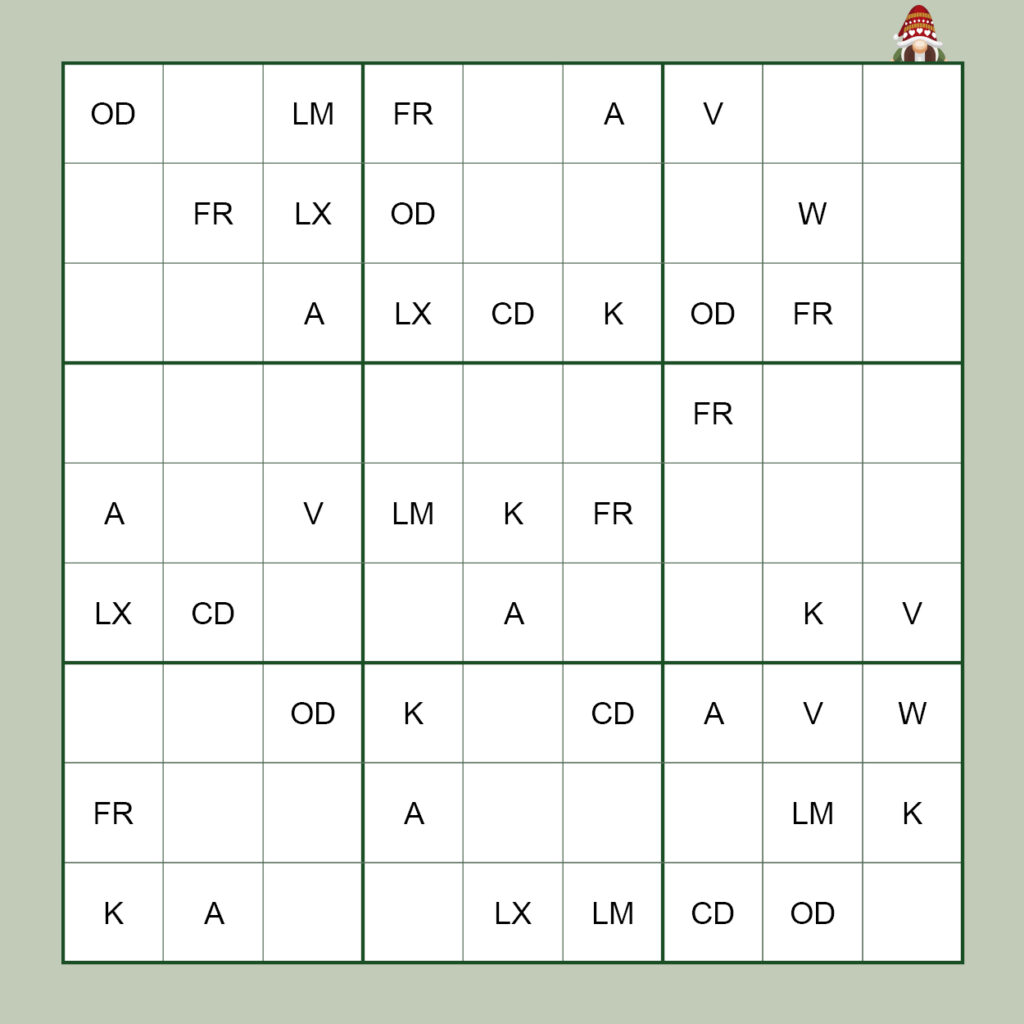 Remplissez la grille : chaque symbole doit apparaître une seule fois par ligne, par colonne et par carré 3×3.