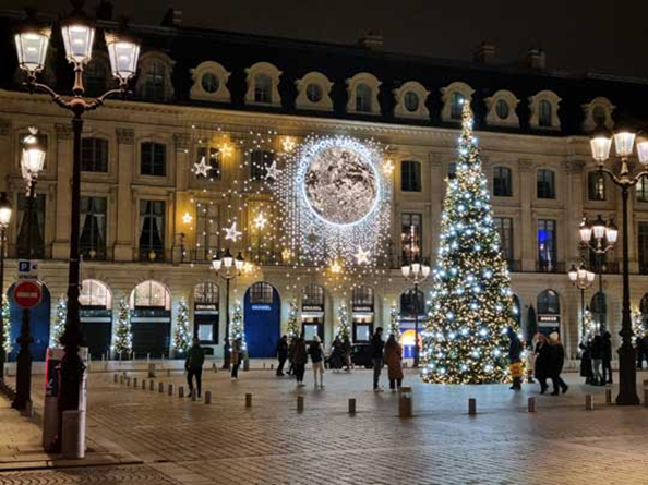 Pourquoi y aller : devant les maisons de luxe, l’éclairage se joue du détail — sapins sculptés, guirlandes à effet “pluie d’étoiles”, mise en valeur de façades. C’est une masterclass en contrôle de l’ambiance : température de couleur choisie pour valoriser le doré, intensités réglées pour éviter l’éblouissement et préserver la perception des vitrines. Parfait pour inspirer des projets de mise en lumière patrimoniale.