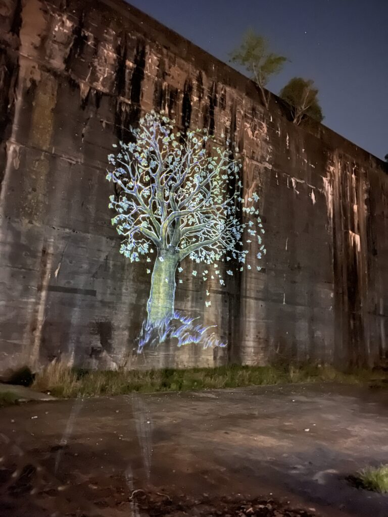 Les jardins de l’arrière base sous-marine, avec l’éclairage de l’aire de jeu « Sous-marin » présenté par Géraud Periole, ainsi que les aménagements réalisés par Quartiers Lumières, avec en bonus une mise en lumière de la future fresque portée par Lionel Bessières